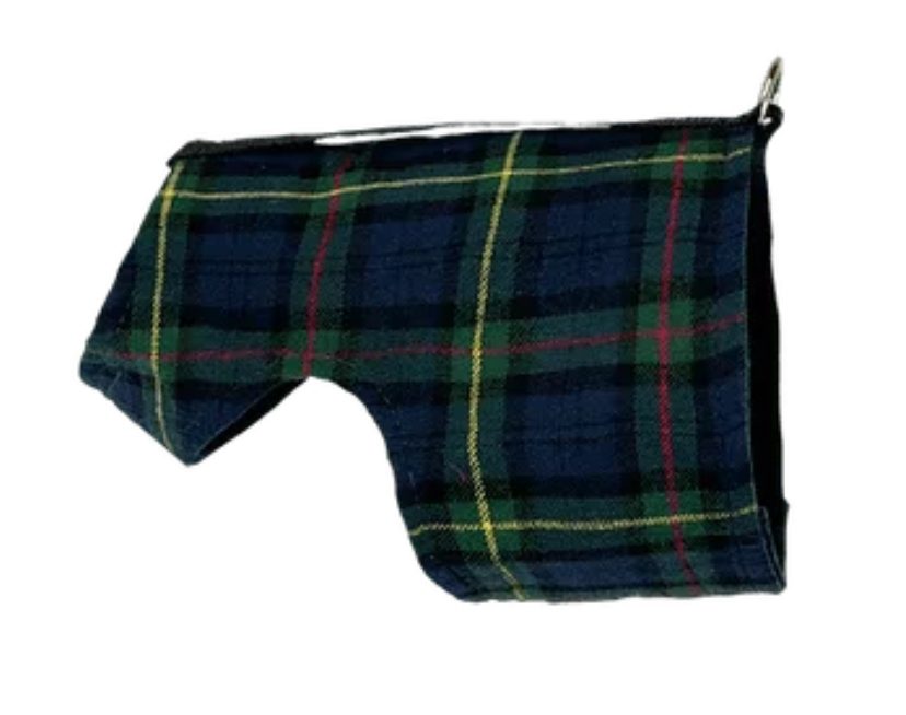 This New Scottish Tartan Wrap is from our 2020 Summer Collection. It features a striking emerald/blue tartan pattern. Folks with a keen eye may remember a similar wrap from our 2016 collection, which virtually sold out in most sizes. There may be very slight variations in pattern in sizes M and L, closer to a Black Watch plaid.